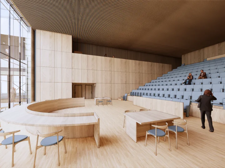 The ECC is a multi-zone complex composed of five program elements (municipal offices including gathering and civic function space, a community recreation centre, a Toronto Public Library district branch, a child care centre, community services), plus an outdoor civic plaza. Sustainability is a high priority- including a district energy plant, and participation in a variety of green programs.