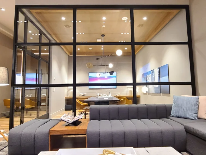 Lighting was added to further engage all areas, and to attract guests toward these areas. The custom illuminated bookshelf received custom lighting to draw attention to the space. Corridors were redefined, the conference rooms/ballrooms, event spaces and small break out spaces received new ceiling lighting. A small portion of the renovation included a retrofit of existing lighting to make the operations more energy efficient – and to maximize the use and versatility of the spaces.