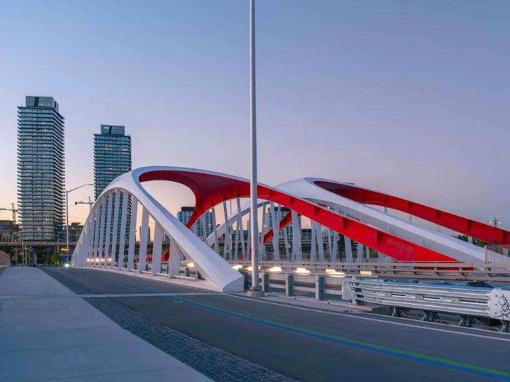 The lighting design of the Portland Bridges, Cherry Street North Bridge, Cherry Street South Bridge, and Commissioners Street Bridge, enhances Toronto’s waterfront by transforming critical infrastructure into illuminated landmarks. These bridges signify a commitment to purposeful urban design and public engagement that connects neighbourhoods within the city.