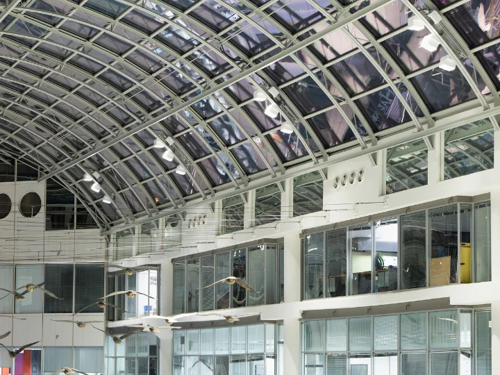 Energy performance was a core driver of the design. The LED system dramatically reduces connected load and ongoing energy consumption, while extending fixture life and lowering maintenance demands in a challenging, high-ceiling environment. Daylight integration plays a critical role: lighting output is carefully calibrated to complement the renewed skylight, allowing electric light to recede when natural light is abundant and seamlessly support it when conditions change.