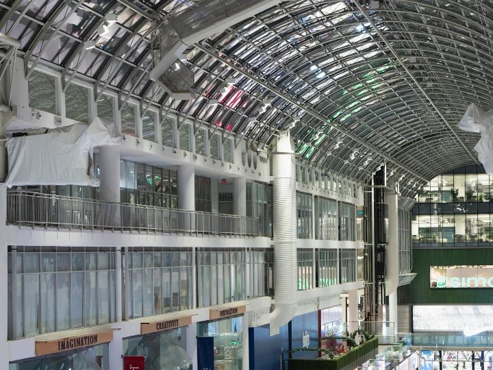 Toronto’s Eaton Centre Galleria upgrade demanded a lighting strategy that balanced heritage sensitivity with forward-looking performance. As one of Canada’s most recognizable commercial interiors, the Galleria is defined by its sweeping skylight, generous scale, and strong connection to daylight. The lighting design needed to respect this original architectural intent while responding to a full skylight replacement, phased construction, and the realities of a continuously operating, high-traffic shopping environment.